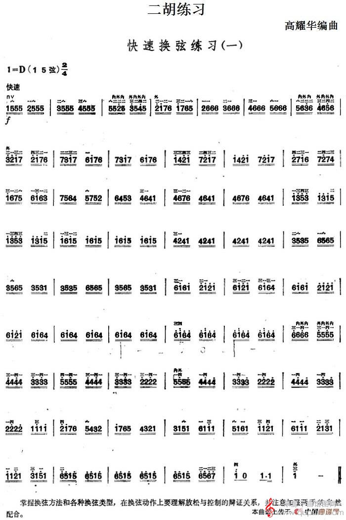 二胡练习:快速换弦练习(一)简谱(二胡练习:快速换弦练习(一)示范曲)