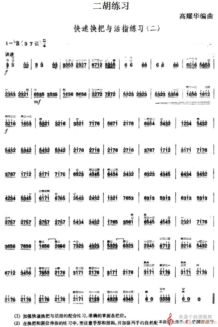 二胡练习:快速换把与活指练习(二)简谱(二胡练习:快速换把与活指练习(二)示范曲)