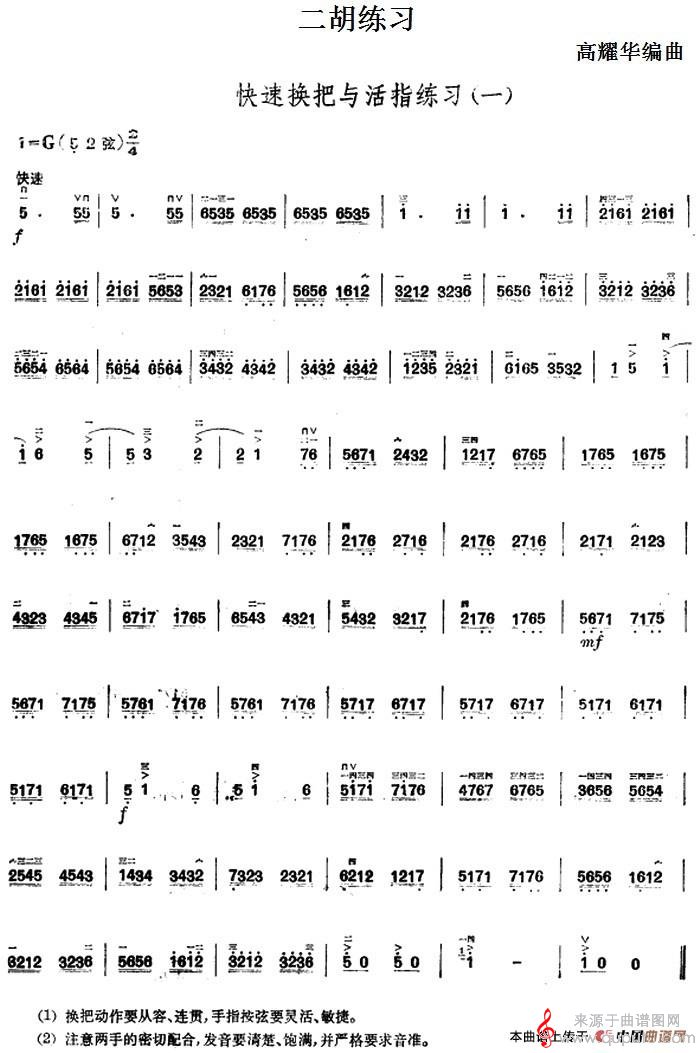 二胡练习:快速换把与活指练习(一)简谱(二胡练习:快速换把与活指练习(一)示范曲)