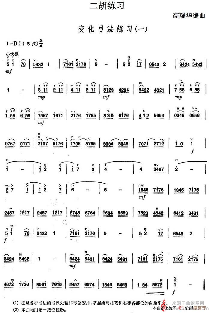 二胡练习:变化弓法练习(一)简谱(二胡练习:变化弓法练习(一)示范曲)