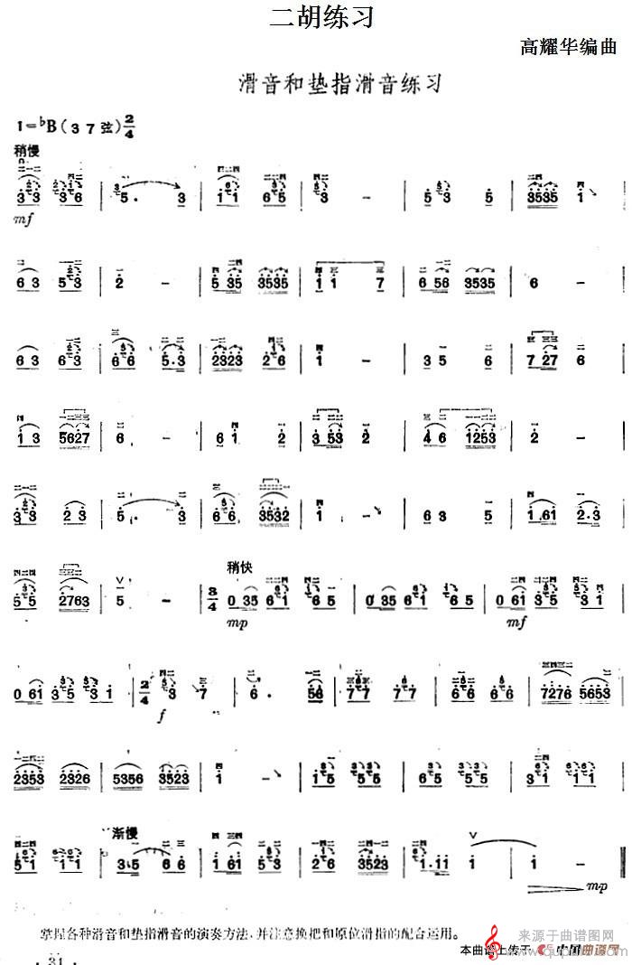 曲谱图网为您提供二胡练习:滑音和垫指滑音练习简谱(二胡练习:滑音和垫指滑音练习示范曲)找谱子,就上曲谱图网。