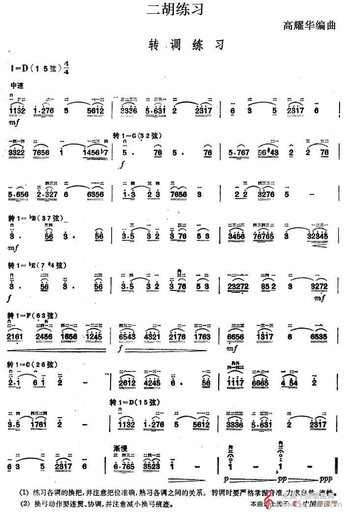 曲谱图网为您提供二胡练习:转调练习简谱(二胡练习:转调练习示范曲)找谱子,就上曲谱图网。