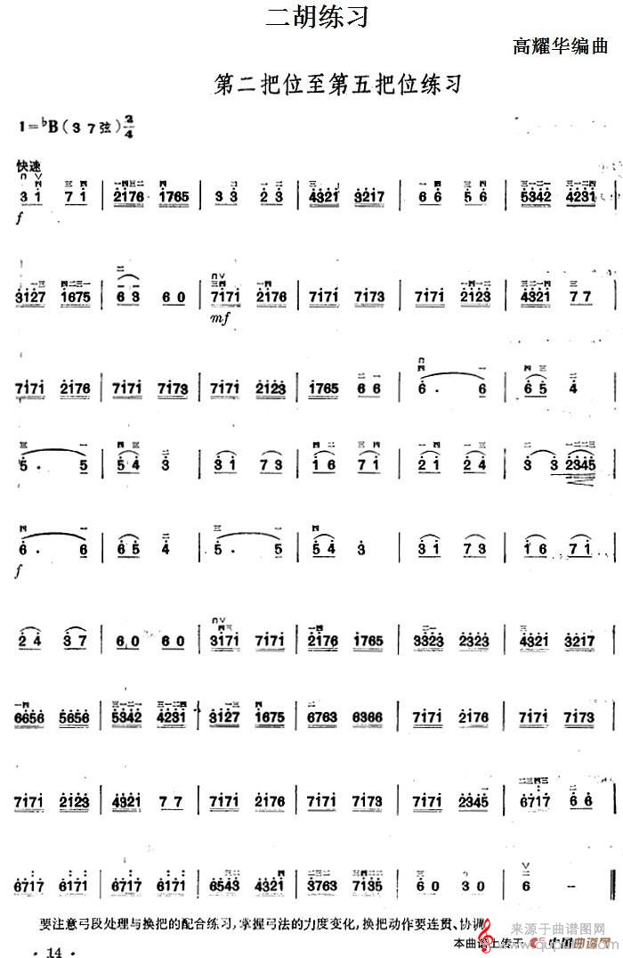 曲谱图网为您提供二胡练习:第二把位至第五把位练习简谱(二胡练习:第二把位至第五把位练习示范曲)找谱子,就上曲谱图网。