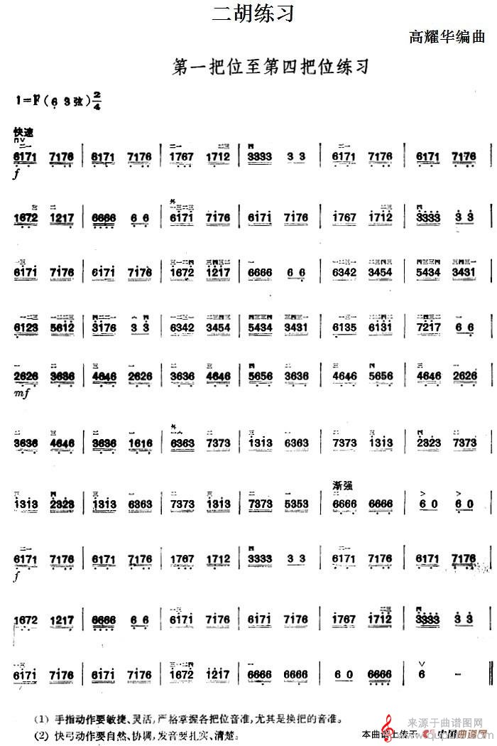 曲谱图网为您提供二胡练习:第一把位至第四把位练习简谱(二胡练习:第一把位至第四把位练习示范曲)找谱子,就上曲谱图网。