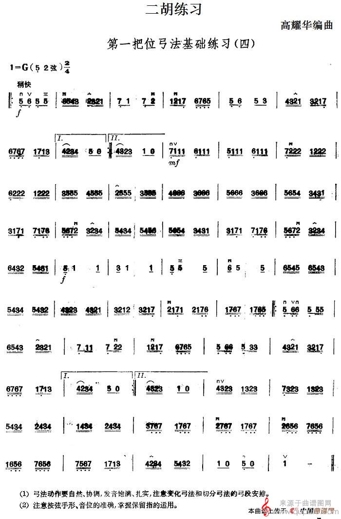 二胡练习:第一把位弓法基础练习(四)简谱(二胡练习:第一把位弓法基础练习(四)示范曲)