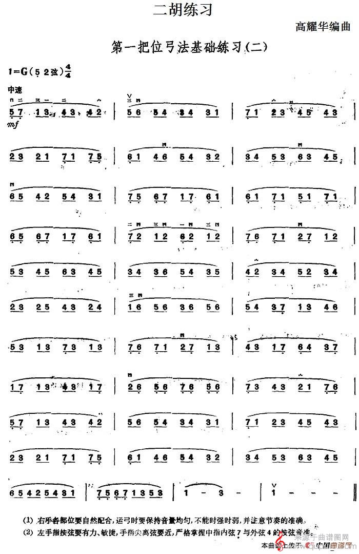 曲谱图网为您提供二胡练习:第一把位弓法基础练习(二)简谱(二胡练习:第一把位弓法基础练习(二)示范曲)找谱子,就上曲谱图网。