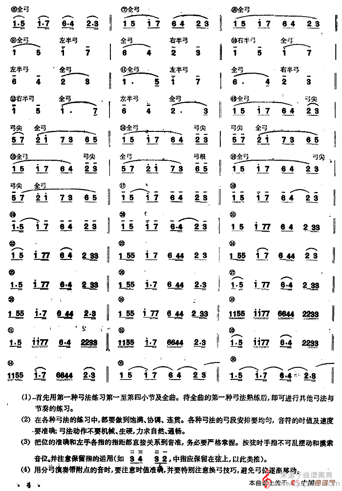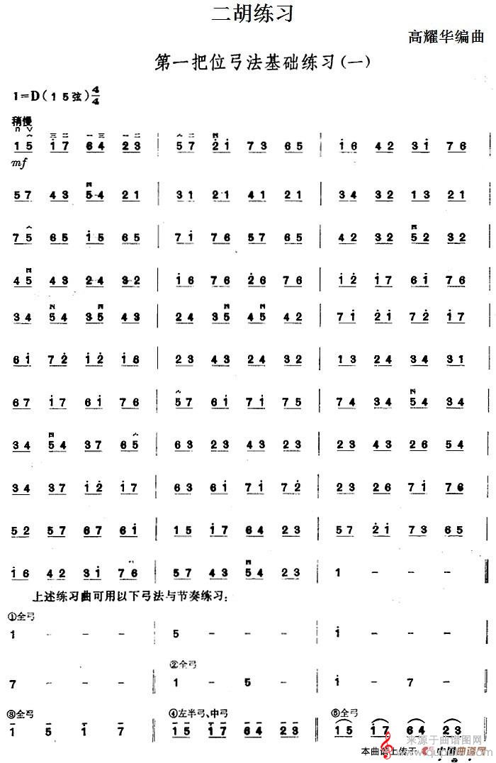 二胡练习:第一把位弓法基础练习(一)简谱(二胡练习:第一把位弓法基础练习(一)示范曲)