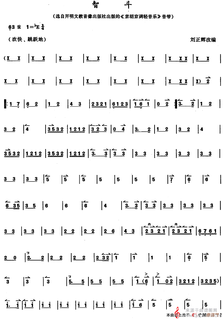 曲谱图网为您提供京胡演奏教程:智斗简谱(京胡演奏教程:智斗二胡演奏简谱)找谱子,就上曲谱图网。