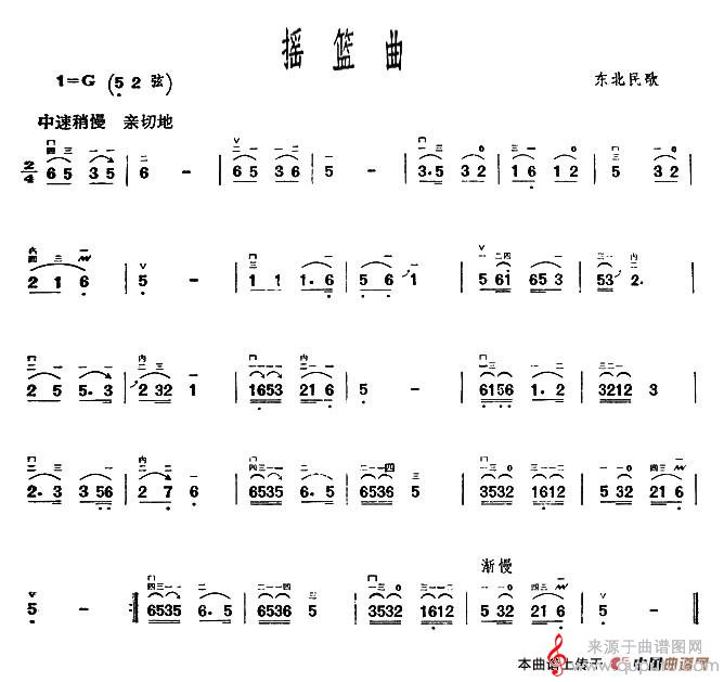 曲谱图网为您提供摇篮曲曲谱(摇篮曲东北民歌二胡演奏简谱)找谱子,就上曲谱图网。