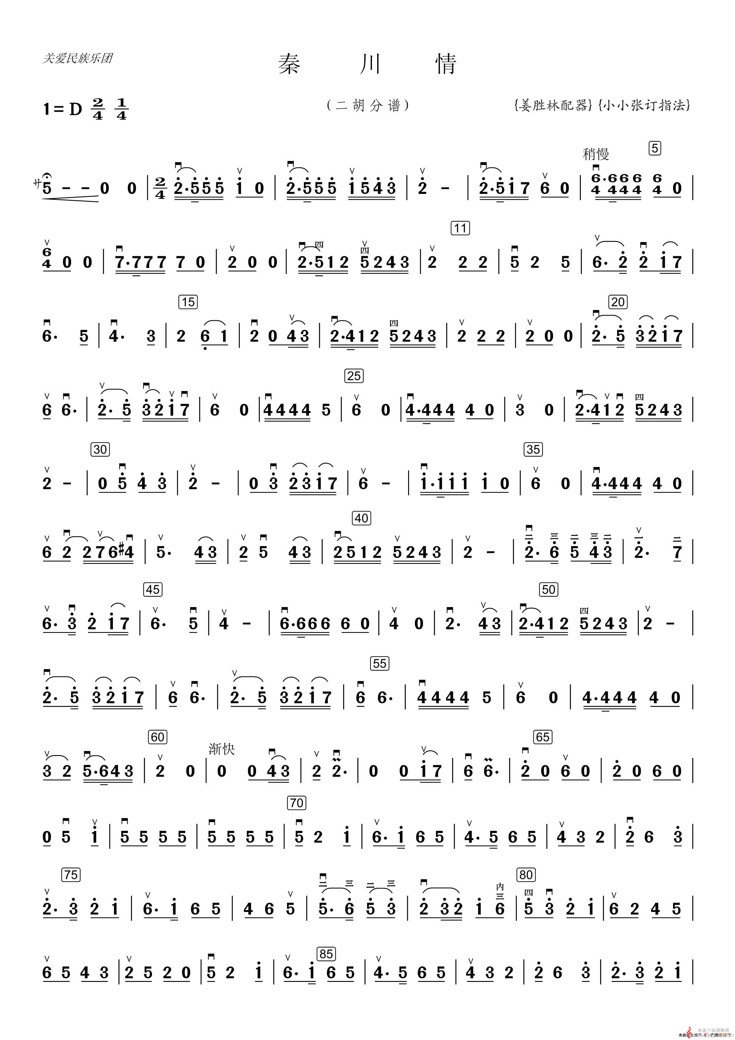 曲谱图网为您提供秦川情简谱(秦川情笛子独奏二胡分谱 小小张制谱)找谱子,就上曲谱图网。