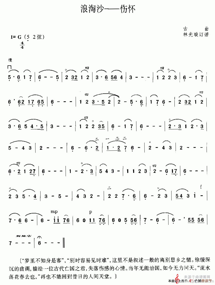 曲谱图网为您提供浪淘沙——伤怀简谱(浪淘沙——伤怀胡琴乐曲曲谱)找谱子,就上曲谱图网。