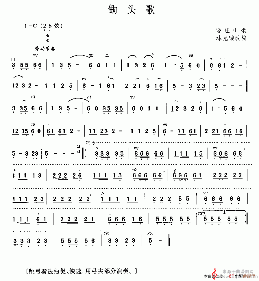 曲谱图网为您提供锄头歌歌曲简谱(锄头歌二胡独奏曲曲谱)找谱子,就上曲谱图网。