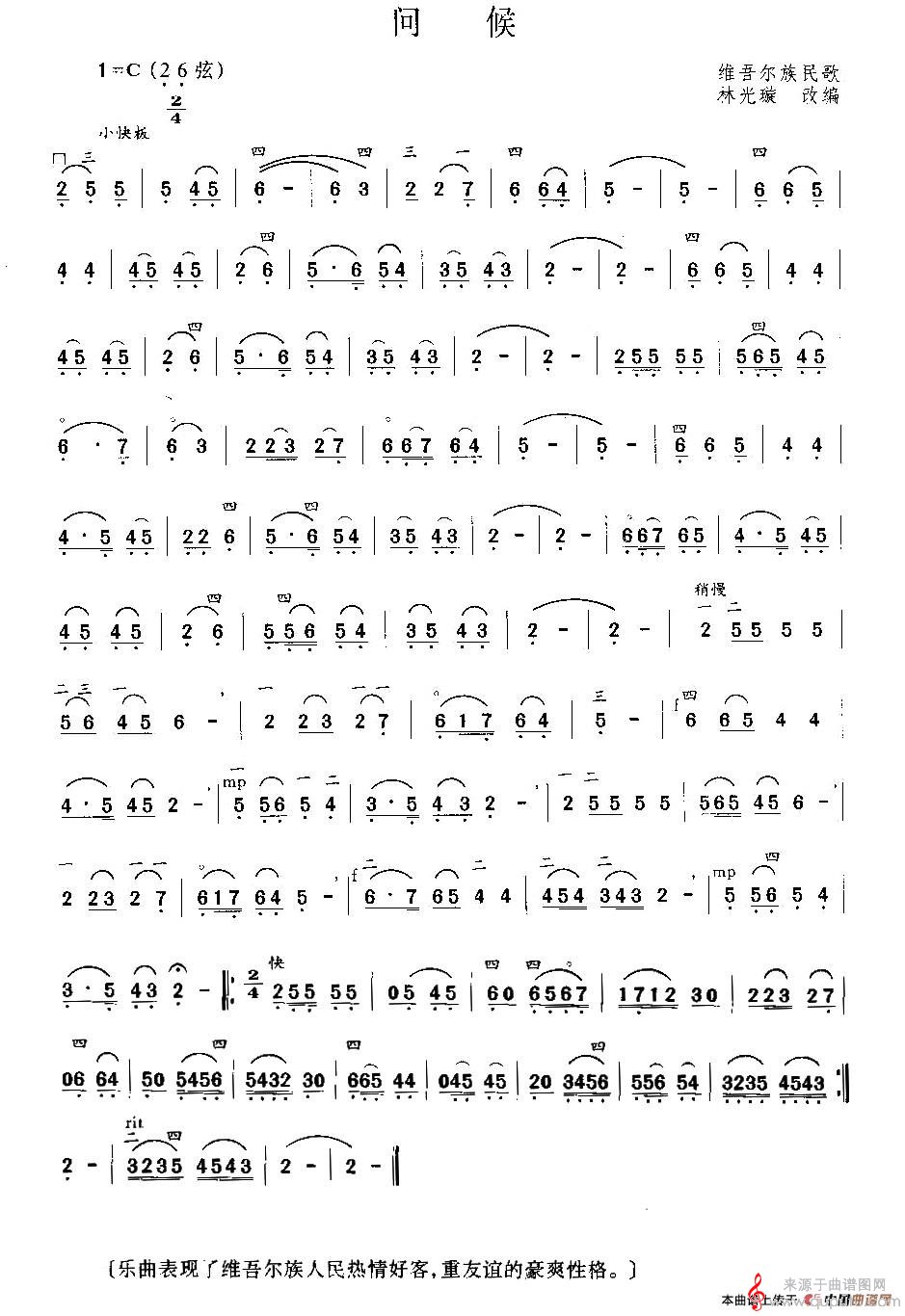 曲谱图网为您提供问候简谱(问候胡琴乐曲曲谱)找谱子,就上曲谱图网。