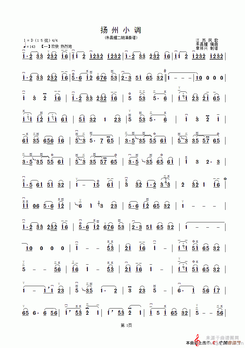 曲谱图网为您提供扬州小调简谱(扬州小调章祥兴制谱版 二胡演奏曲曲谱)找谱子,就上曲谱图网。