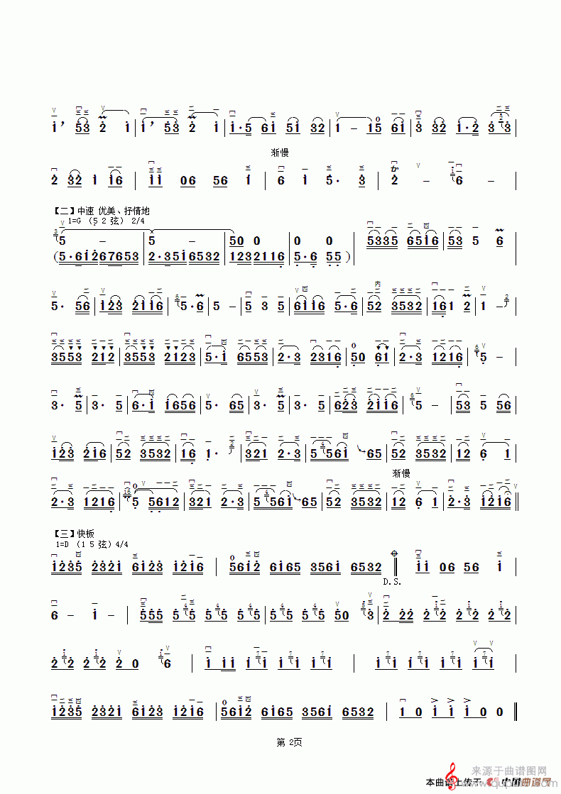 扬州小调简谱(扬州小调章祥兴制谱版 二胡演奏曲曲谱)