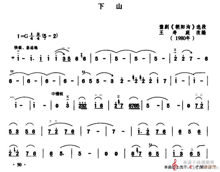 曲谱图网为您提供下山简谱(下山二胡演奏曲曲谱)找谱子,就上曲谱图网。