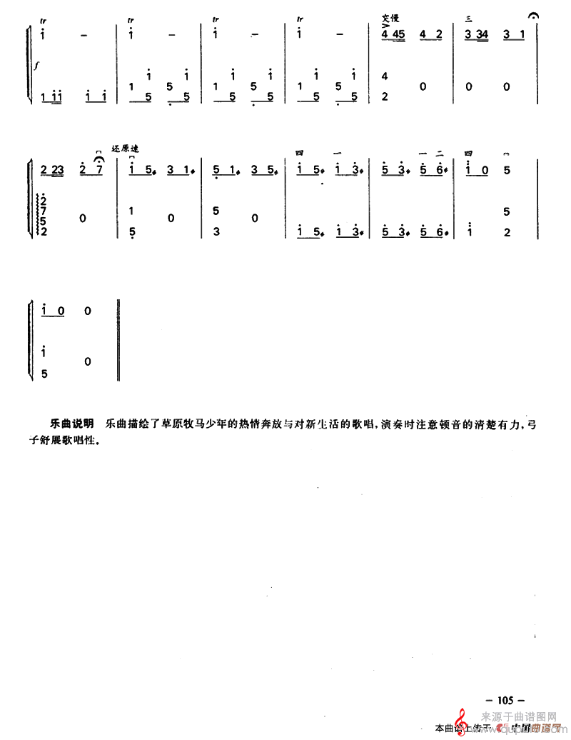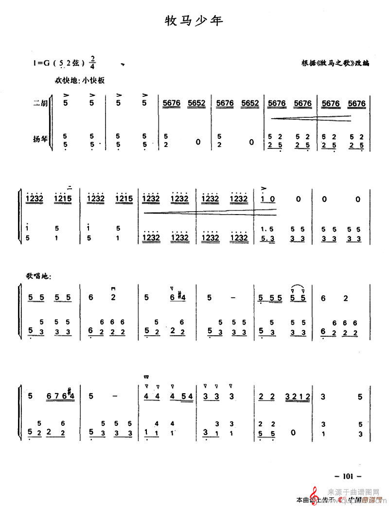 曲谱图网为您提供牧马少年简谱(牧马少年二胡+扬琴合奏曲谱)找谱子,就上曲谱图网。