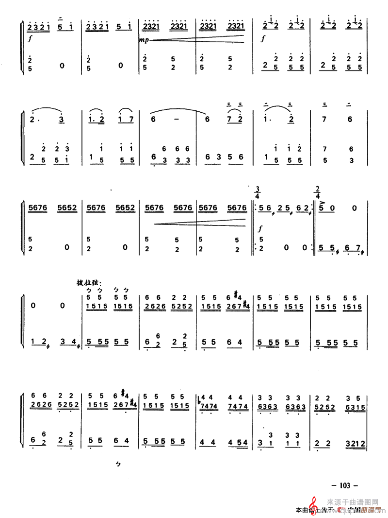 当前位置:曲谱图网器乐曲谱胡琴牧马少年简谱(牧马少年二胡+扬琴合奏曲谱)