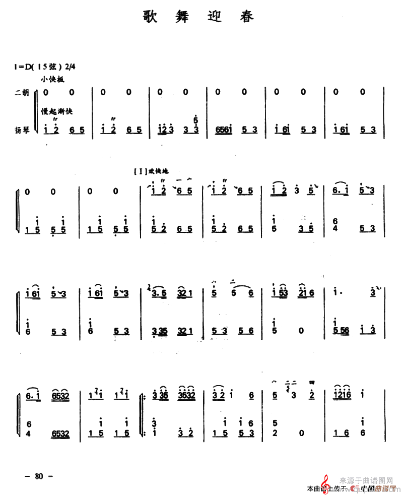 曲谱图网为您提供歌舞迎春简谱(歌舞迎春二胡+扬琴合奏简谱)找谱子,就上曲谱图网。