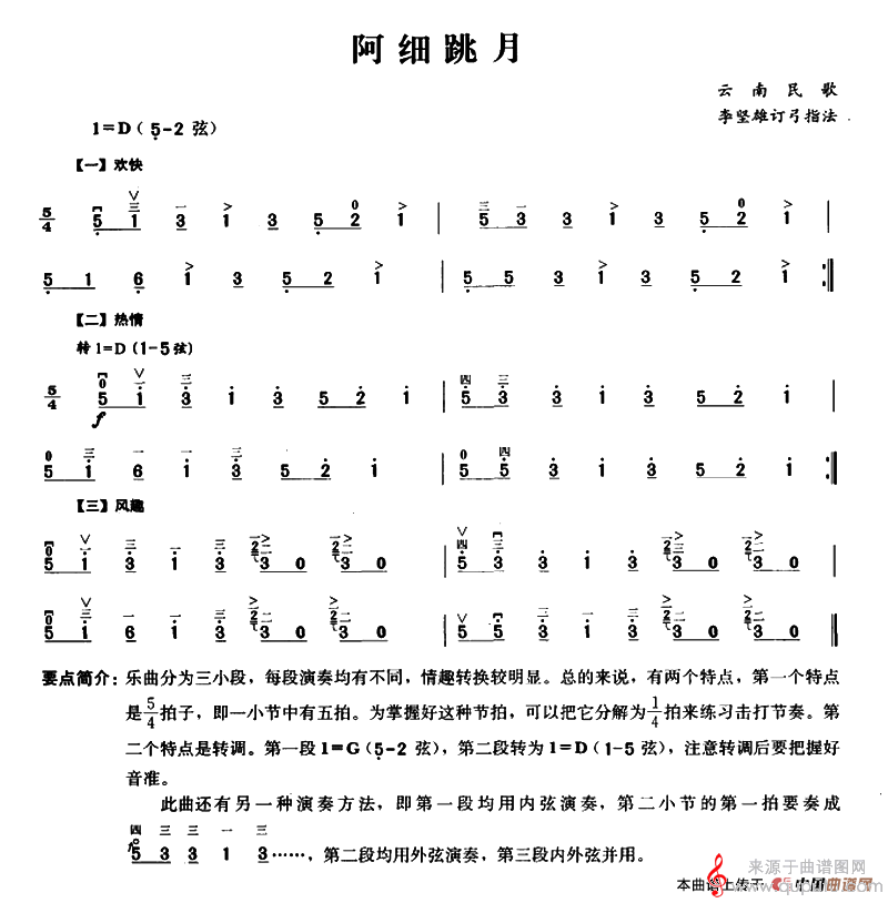 阿细跳月简谱(阿细跳月二胡演奏曲曲谱)