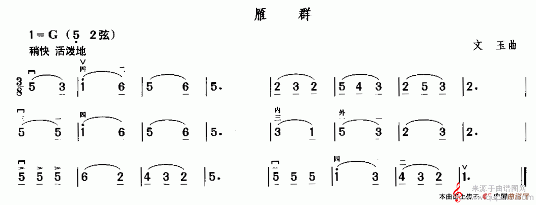 曲谱图网为您提供雁群简谱(雁群二胡演奏简谱)找谱子,就上曲谱图网。