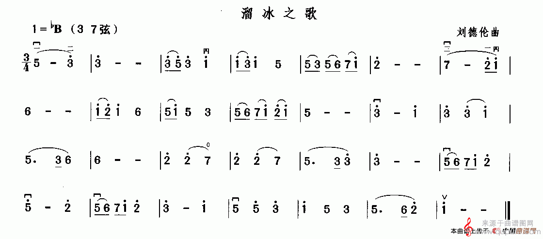 曲谱图网为您提供溜冰之歌歌曲曲谱(溜冰之歌二胡演奏曲谱)找谱子,就上曲谱图网。
