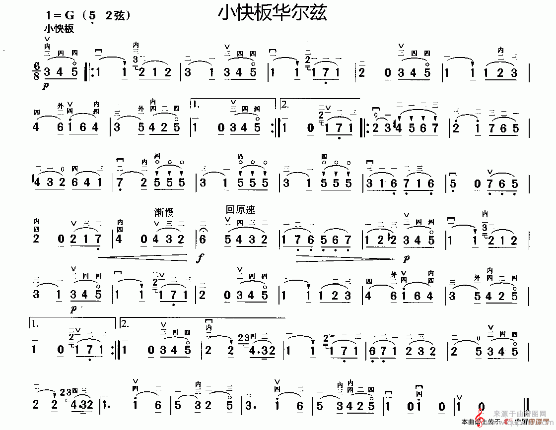 曲谱图网为您提供小快板华尔兹简谱(小快板华尔兹二胡演奏简谱)找谱子,就上曲谱图网。
