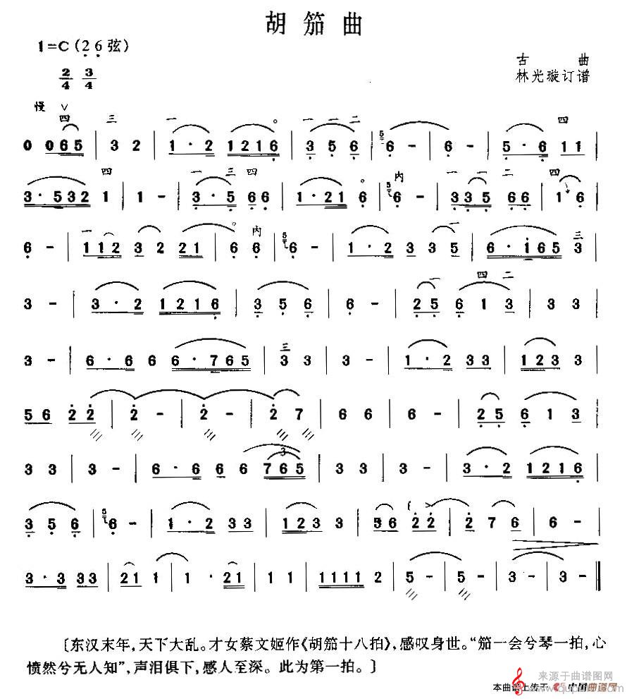 曲谱图网为您提供胡笳曲曲谱(胡笳曲二胡演奏曲曲谱)找谱子,就上曲谱图网。