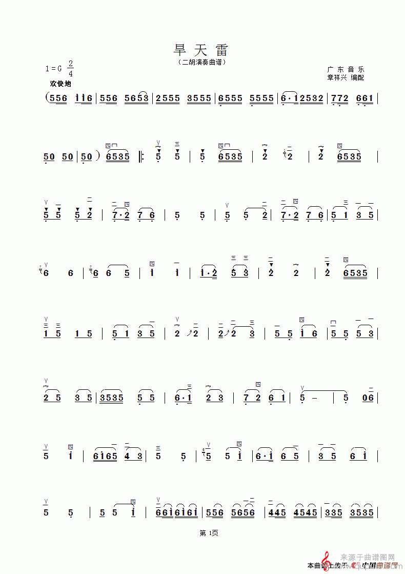 曲谱图网为您提供旱天雷简谱(旱天雷二胡演奏曲谱、章祥兴制谱版)找谱子,就上曲谱图网。