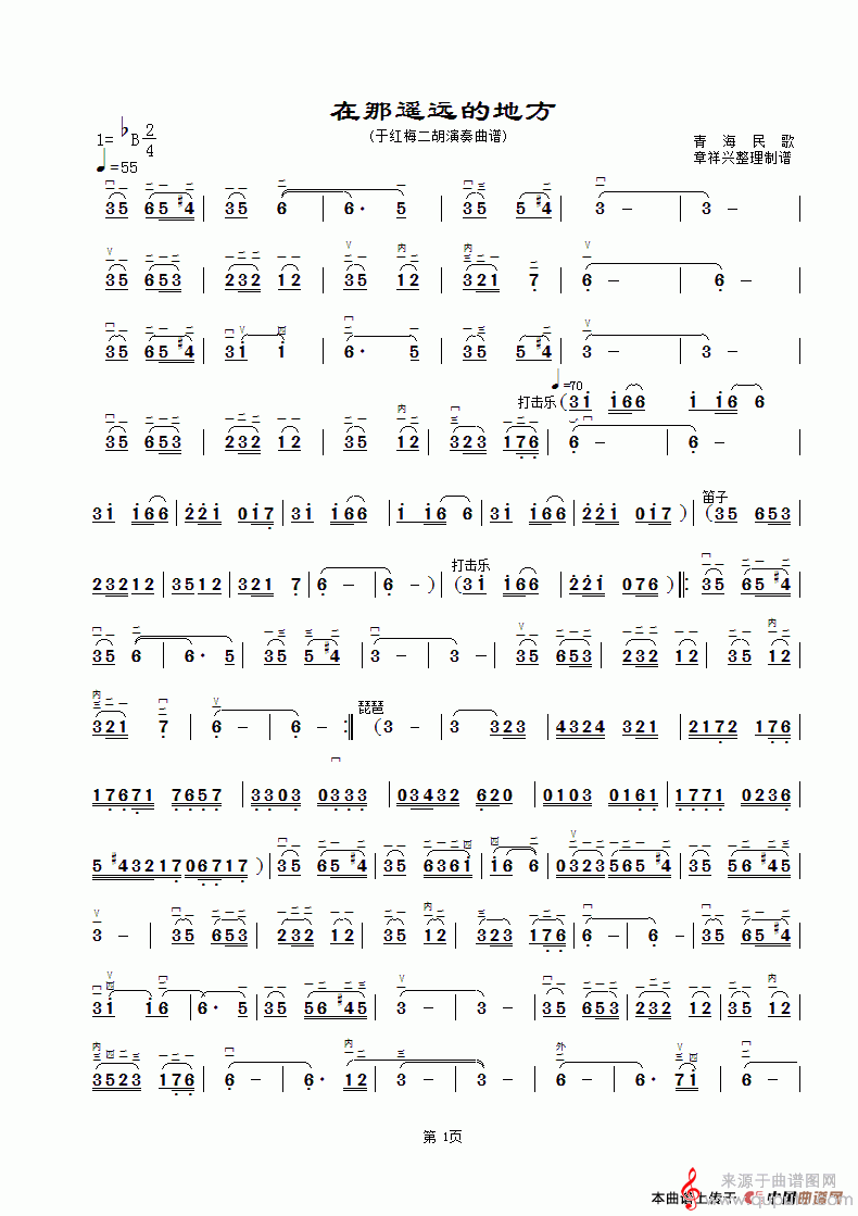 曲谱图网为您提供在那遥远的地方简谱(在那遥远的地方章祥兴整理制谱版 二胡演奏曲谱 )找谱子,就上曲谱图网。