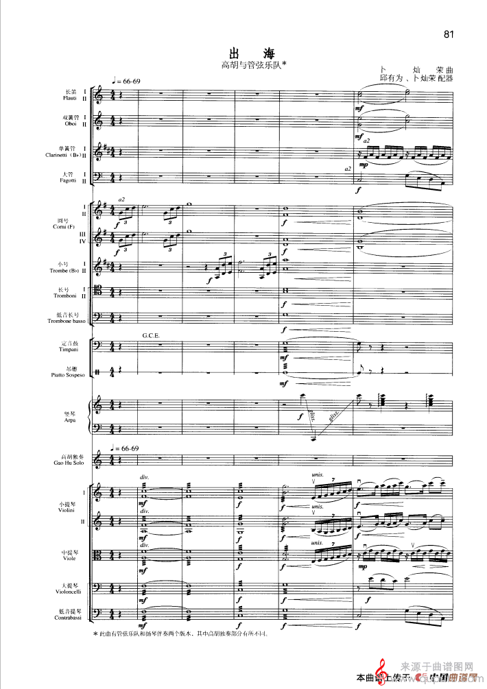 曲谱图网为您提供出海简谱(出海高胡与管弦乐队合奏曲谱)找谱子,就上曲谱图网。
