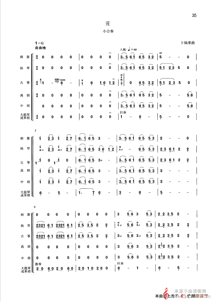 曲谱图网为您提供莲简谱(莲二胡小合奏简谱)找谱子,就上曲谱图网。