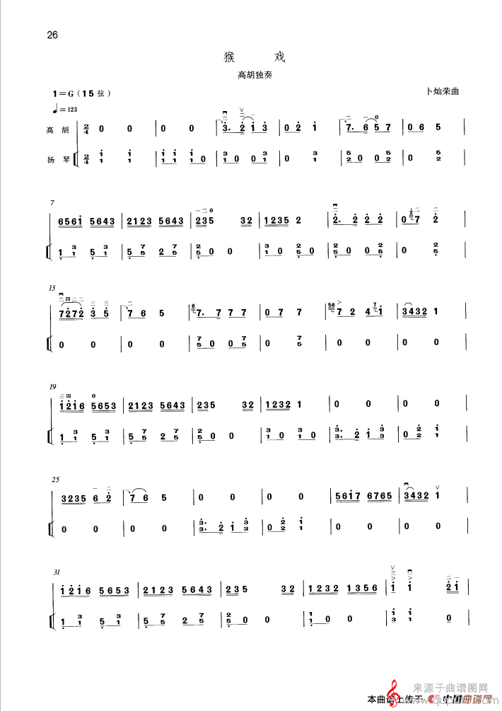 曲谱图网为您提供猴戏简谱(猴戏高胡独奏简谱)找谱子,就上曲谱图网。