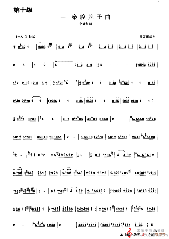 曲谱图网为您提供秦腔牌子曲曲谱(秦腔牌子曲 板胡曲集第十级 中音板胡演奏曲谱)找谱子,就上曲谱图网。