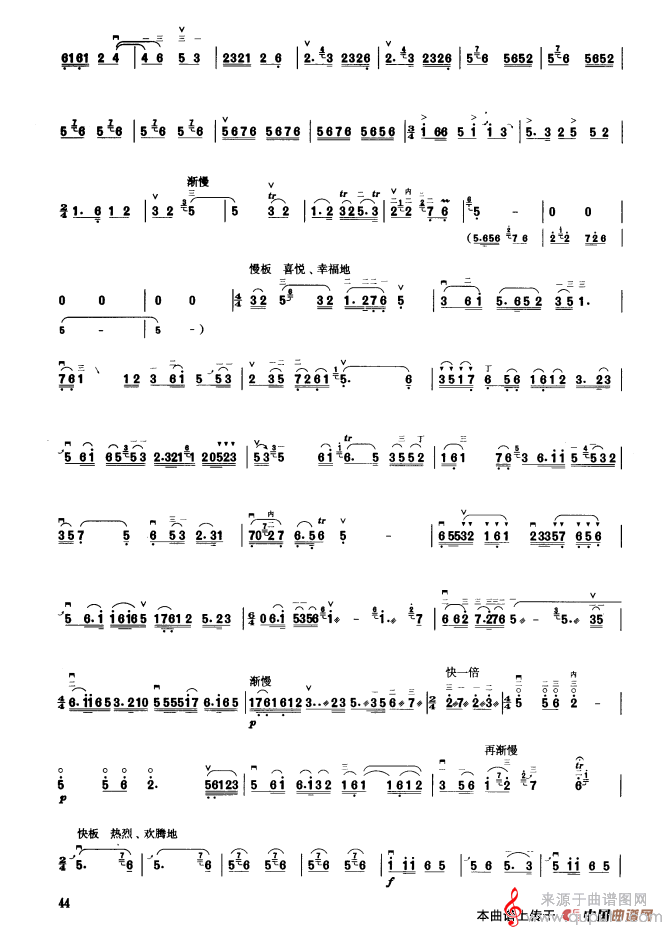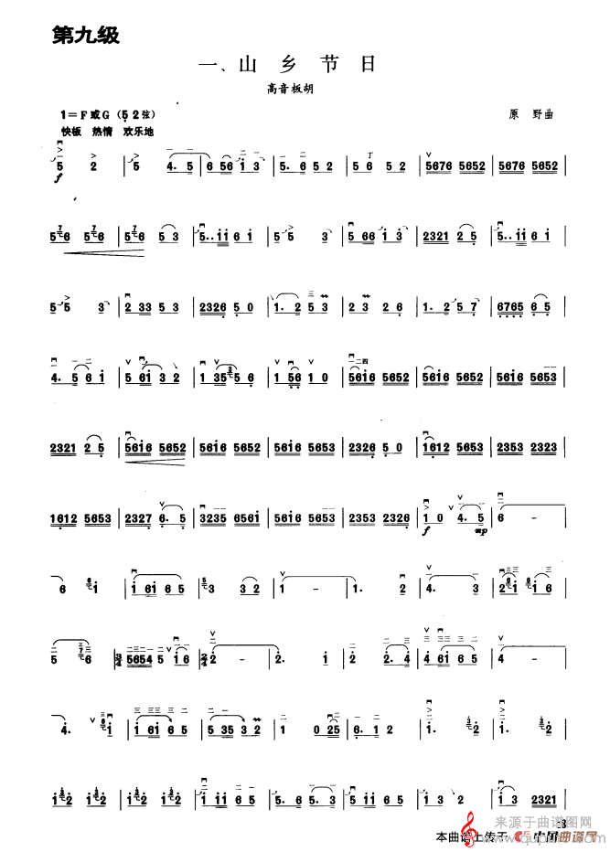 山乡节日简谱(山乡节日 板胡曲集第九级 高音板胡演奏简谱)
