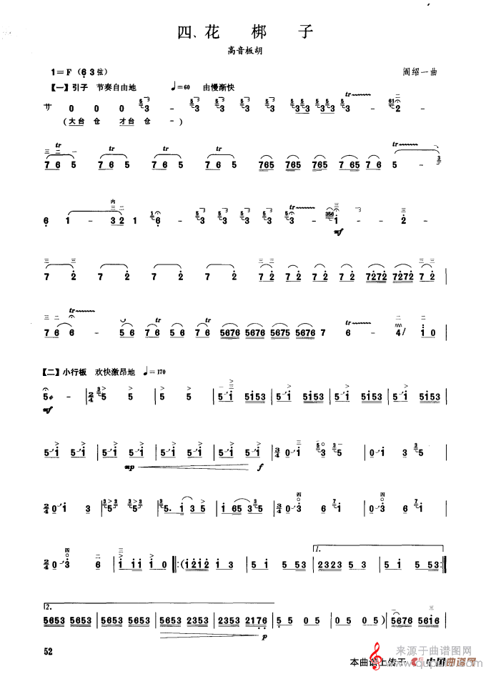 曲谱图网为您提供花梆子曲谱(花梆子 板胡曲集第九级 高音板胡演奏曲谱)找谱子,就上曲谱图网。