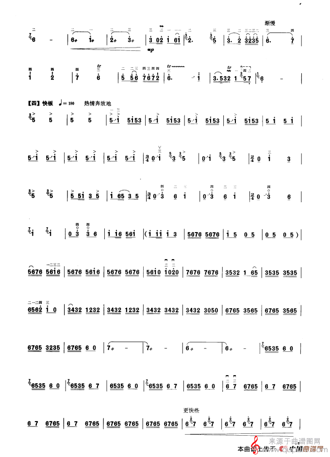 当前位置:曲谱图网器乐曲谱胡琴花梆子曲谱(花梆子 板胡曲集第九级 高音板胡演奏曲谱)