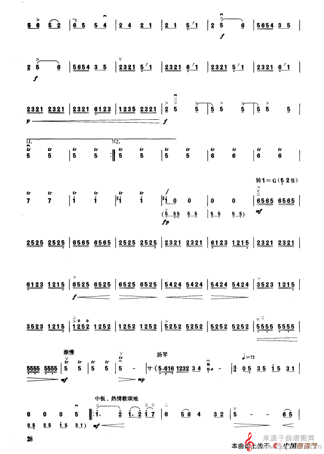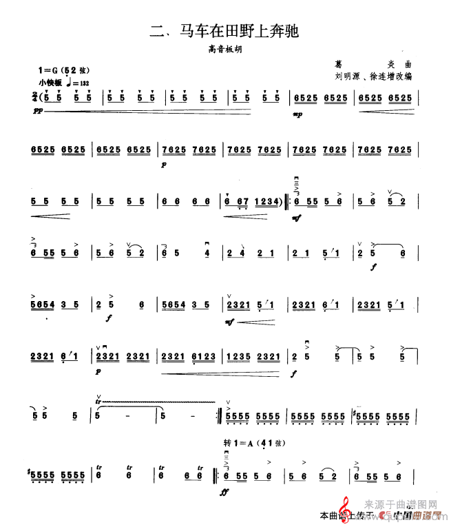 曲谱图网为您提供马车在田野上奔驰简谱(马车在田野上奔驰 板胡曲集第八级 高音板胡演奏曲谱)找谱子,就上曲谱图网。