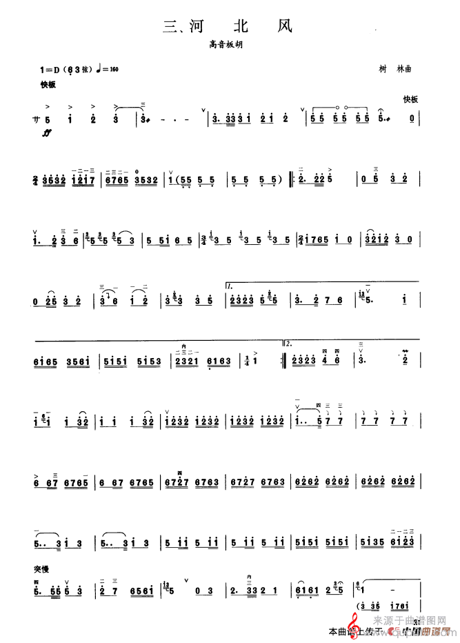 曲谱图网为您提供河北风简谱(河北风 板胡曲集第八级 高音板胡演奏曲谱)找谱子,就上曲谱图网。