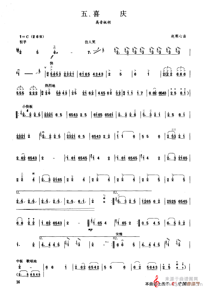 喜庆简谱(喜庆 板胡曲集第七级 高音板胡演奏简谱)