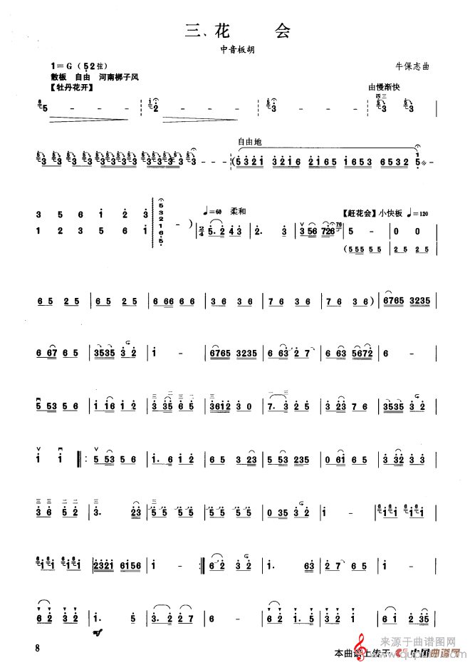 曲谱图网为您提供花会简谱(花会 板胡曲集第七级 中音板胡演奏简谱)找谱子,就上曲谱图网。