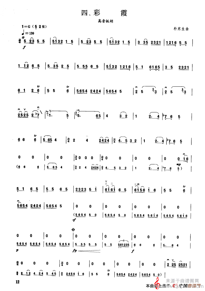 彩霞简谱(彩霞 板胡曲集第七级 高音板胡演奏曲谱)