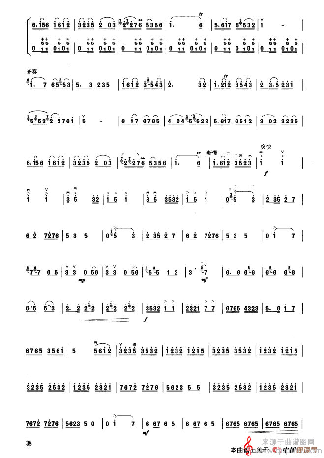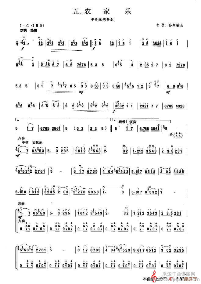 农家乐简谱(农家乐 板胡曲集第四级 中音板胡齐奏曲谱)