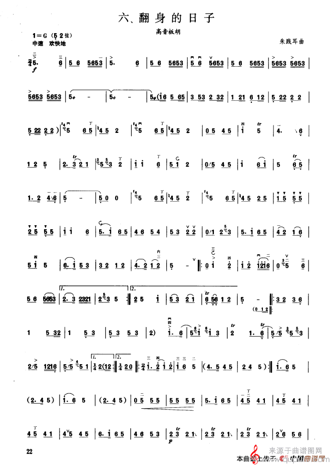 曲谱图网为您提供翻身的日子简谱(翻身的日子 板胡曲集第三级 高音板胡独奏简谱)找谱子,就上曲谱图网。