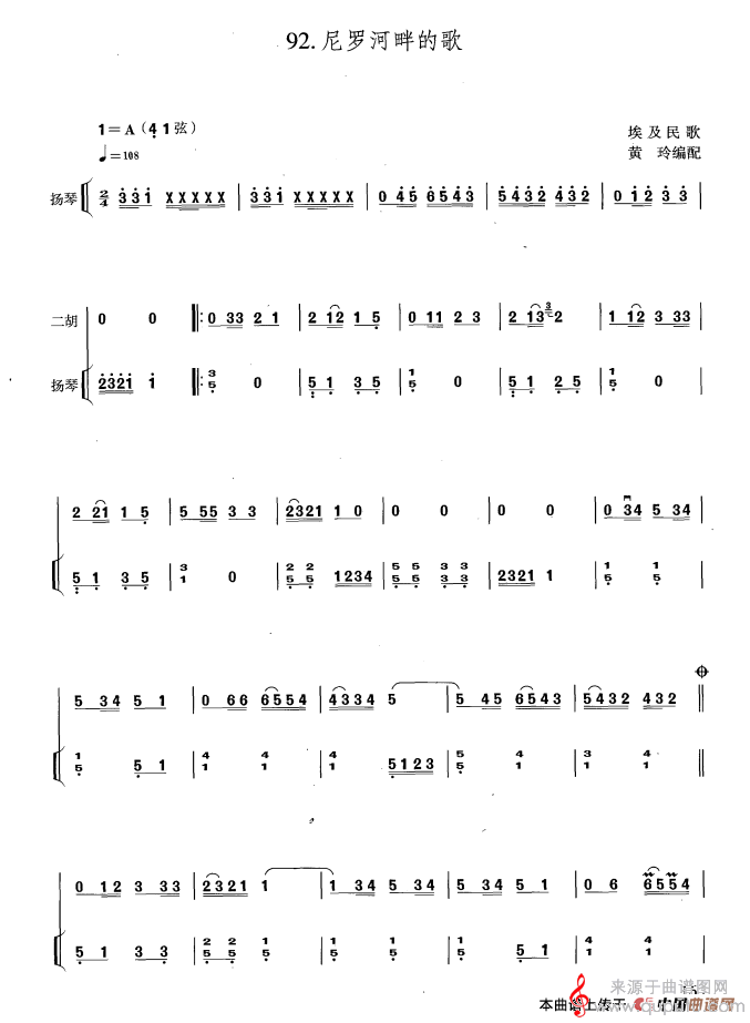 尼罗河畔的歌民歌曲谱(尼罗河畔的歌扬琴伴奏谱)