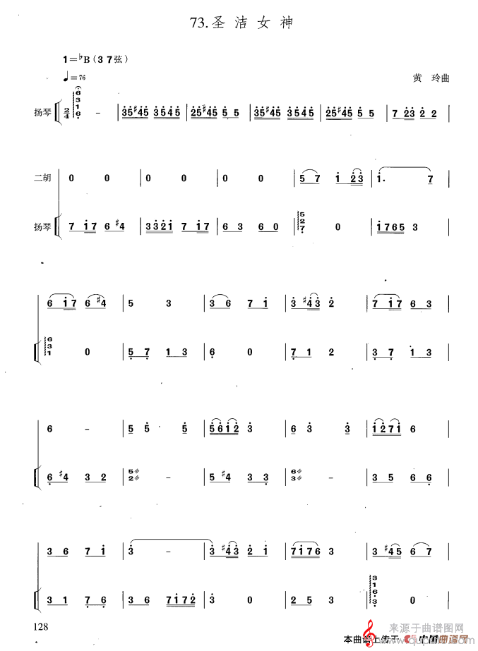 圣洁女神简谱(圣洁女神扬琴伴奏曲谱)