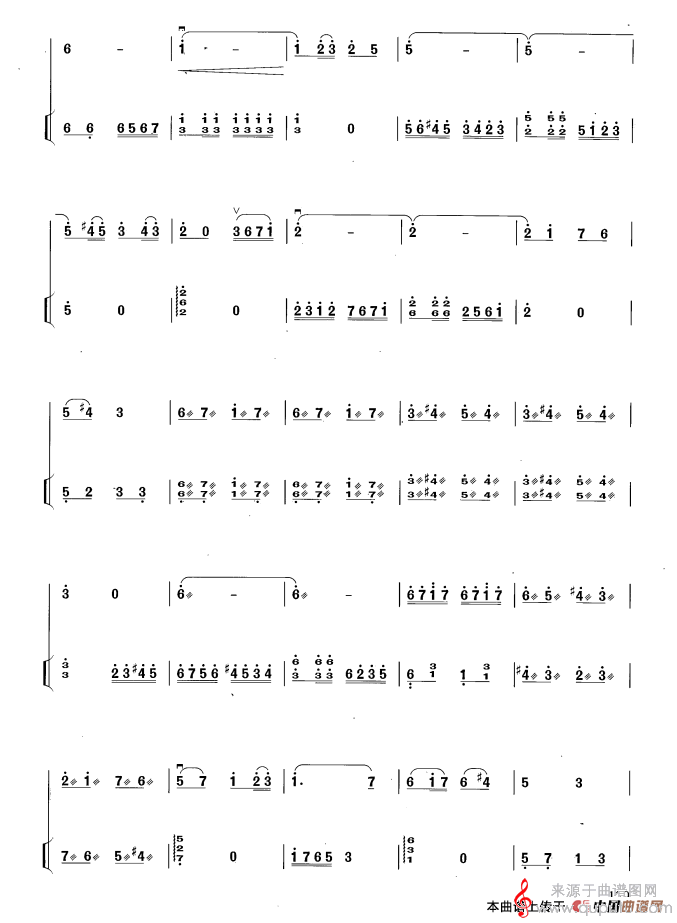 提示:在曲谱图片上单击右键,选择“图片另存为...”即可将曲谱保存到您的电脑中,打印时候可将图片插入到WORD中,调整合适大小打印即可。