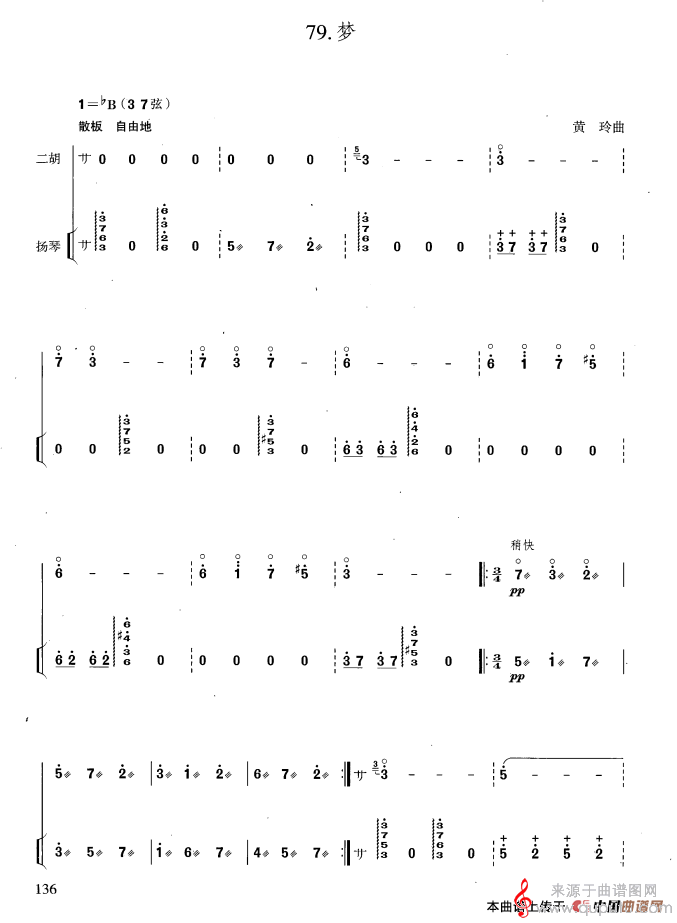 当前位置:曲谱图网器乐曲谱胡琴梦简谱(梦扬琴伴奏曲谱)