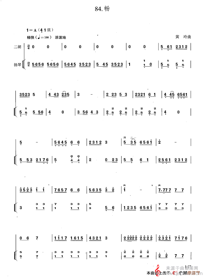 当前位置:曲谱图网器乐曲谱胡琴畅简谱(畅扬琴演奏曲谱)