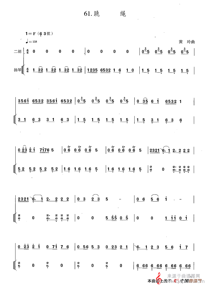 曲谱图网为您提供跳绳简谱(跳绳扬琴演奏曲谱)找谱子,就上曲谱图网。